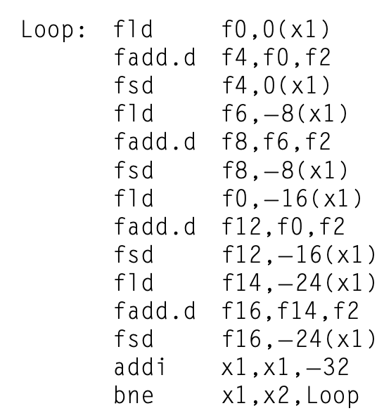 - 使用 循环展开(loop unrolling) 并进行调度,可以进一步减少每次迭代的平均周期数.