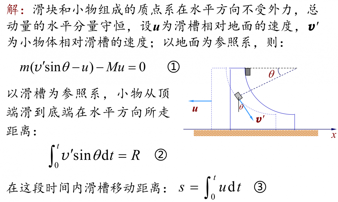 质量为 ,半径为 的四分之一圆弧形滑槽,原来静止光滑水平地面上,质量为 的小物体由静止开始沿滑槽从槽顶滑到槽底。求这段时间内滑槽移动的距离 。