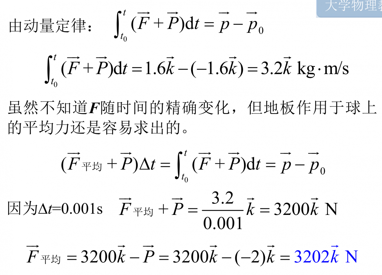一质量为 的橡皮球,向地板落下。它以 的速率和地板相撞,并近似地以相同的速率回跳起来。高速摄影测得球与地板相接触的时间为 。怎样描述地板作用于球上的力呢?重力加速度 取 。