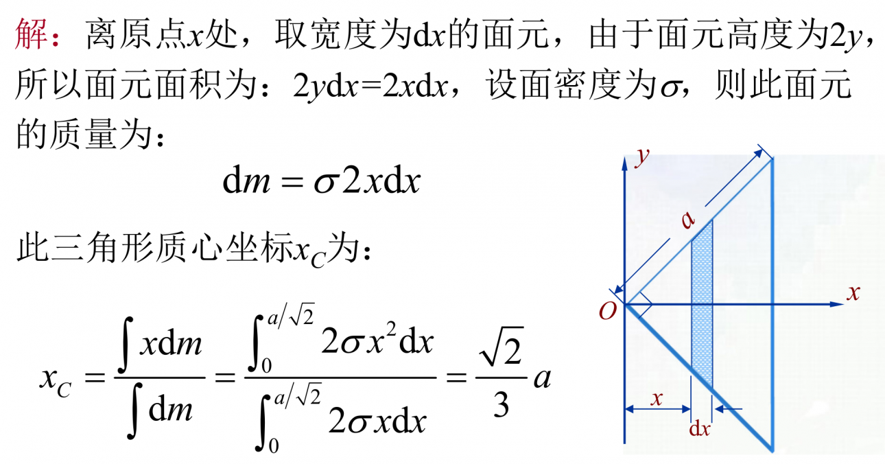 求腰长为 的等腰直角三角形均匀薄板的质心位置。
