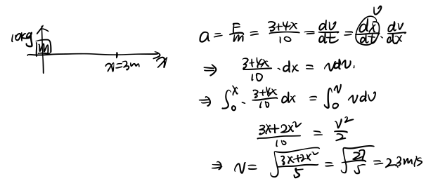 一质量为 的物体在合力 的作用下,沿 轴运动。该物体开始时静止在坐标原点,求该物体经过 时的速度。